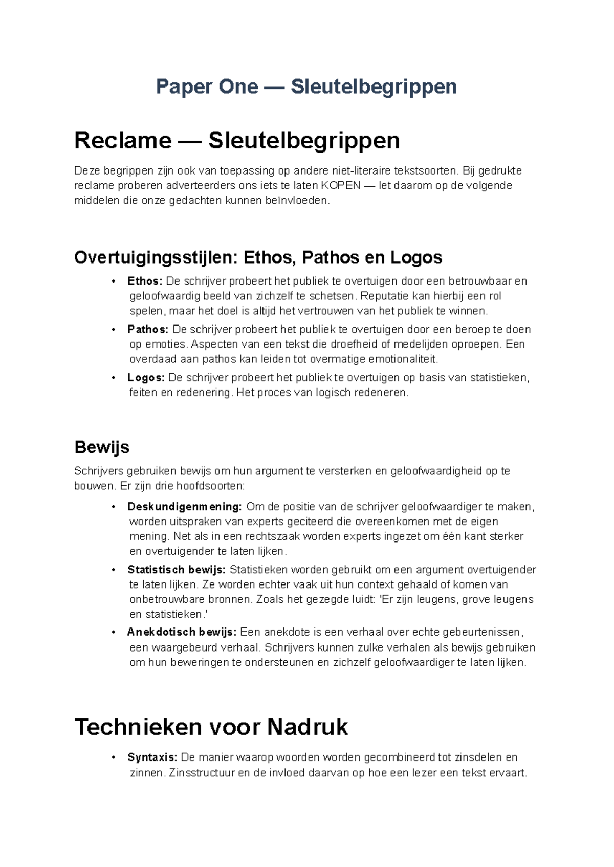 Nederlands Exam Prep - Paper 1 Sleutelbegrippen Reclame en Fotografie ...