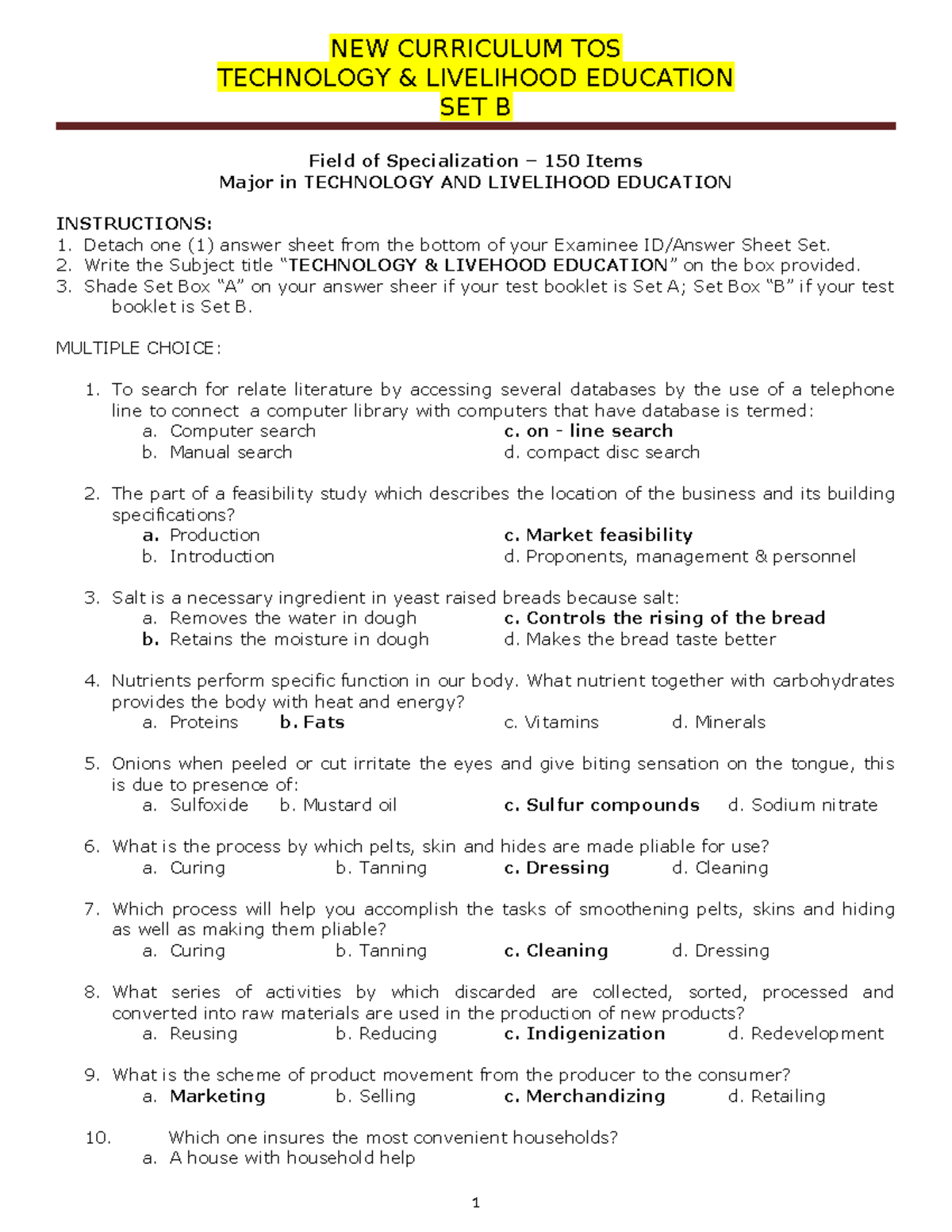 SET B TLE Reviewer: Technology and Livelihood Education Exam Prep - Studocu