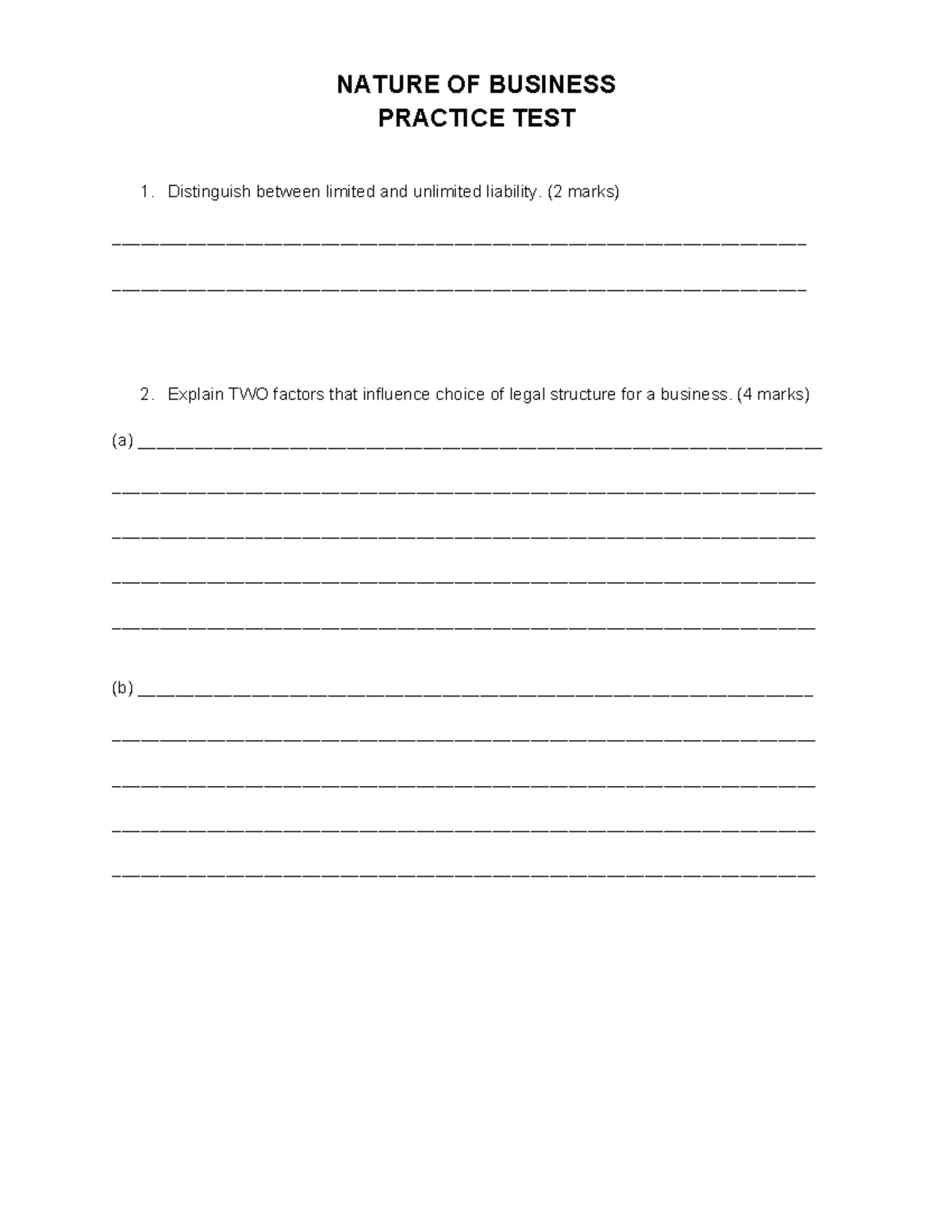 NATURE OF BUSINESS PRACTICE TEST 1: Key Concepts & Influences - Studocu