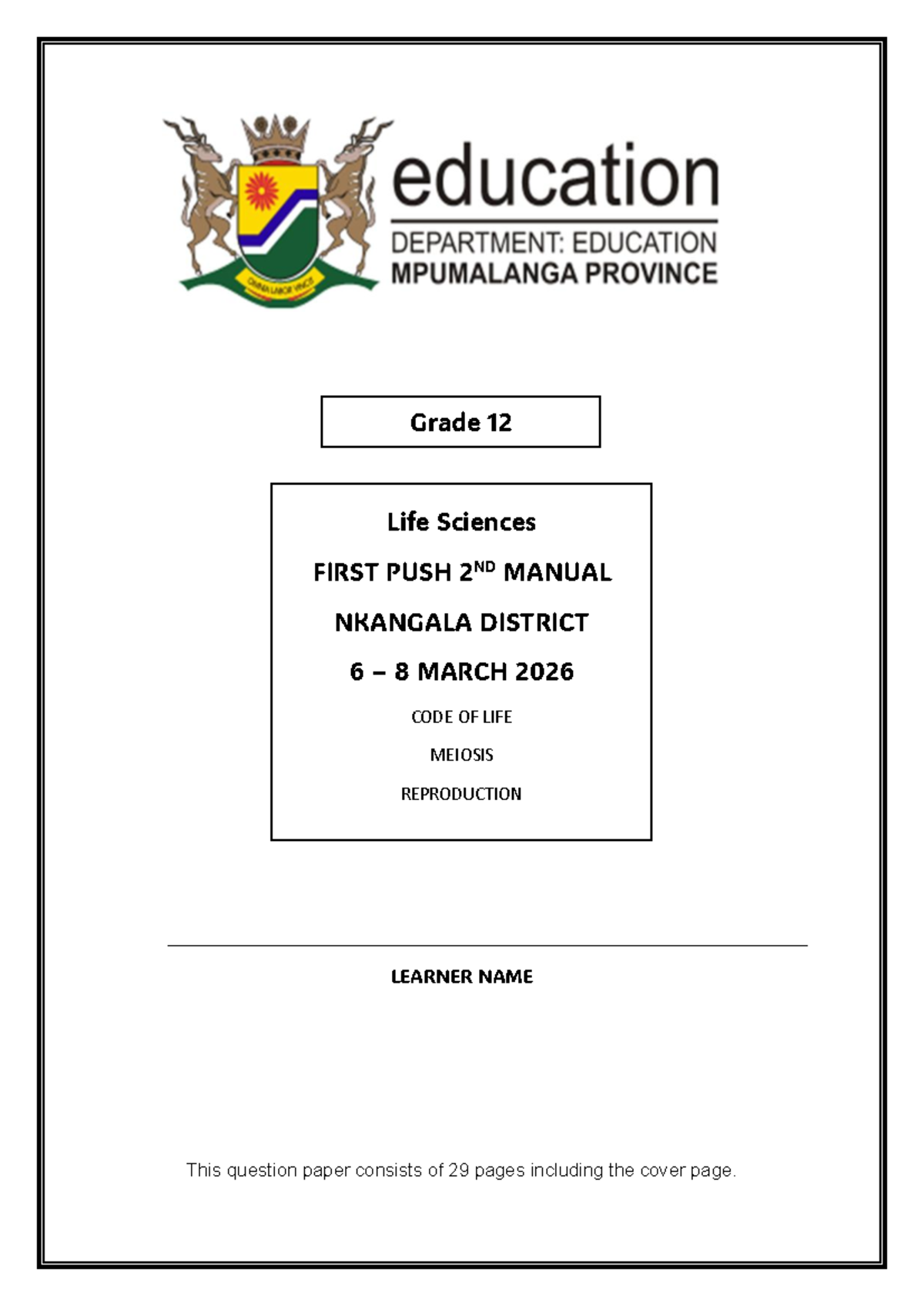 Grade 12 Life Sciences Manual 2: Meiosis & Reproduction Exam Prep - Studocu