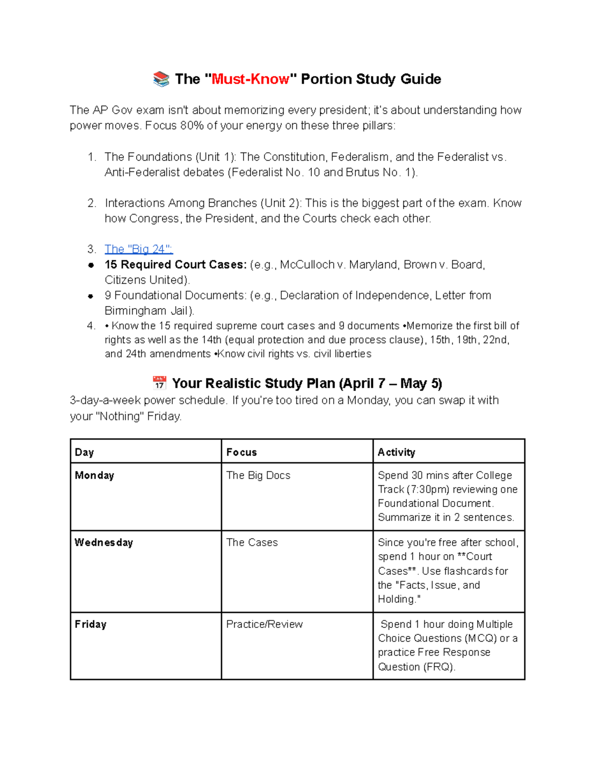 AP Gov Must-Know Study Guide for Exam Prep - Studocu
