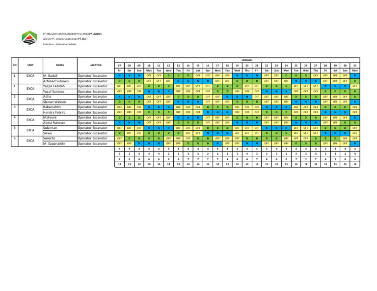 Roster Operator Exca Mei 2025 | PDF