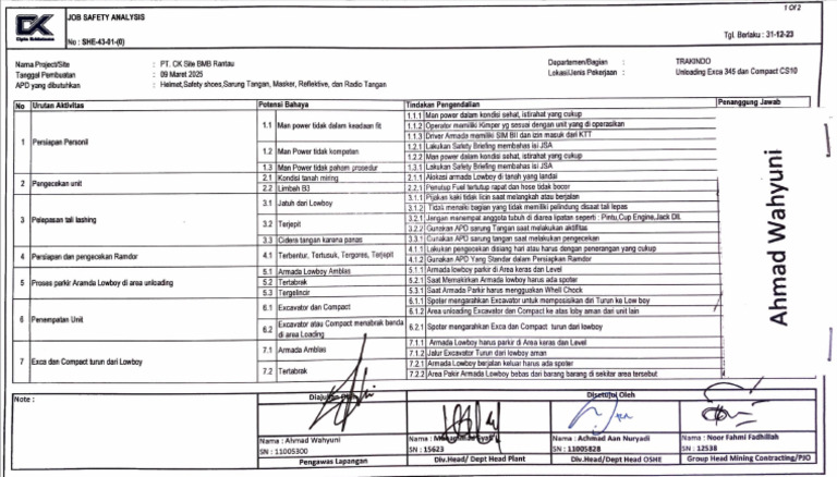 Anak Asuh Operator Exca | PDF