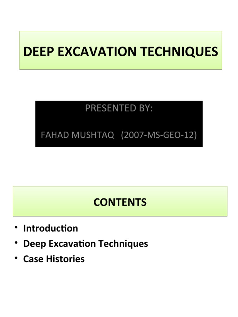Deep Excavation Techniques Deep Excavation Techniques: Presented by ...