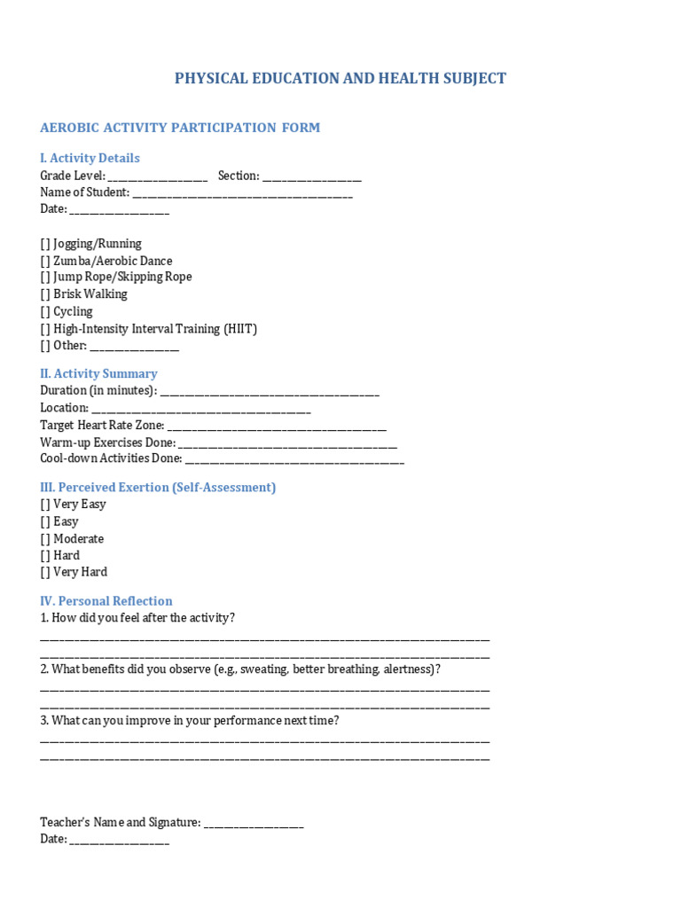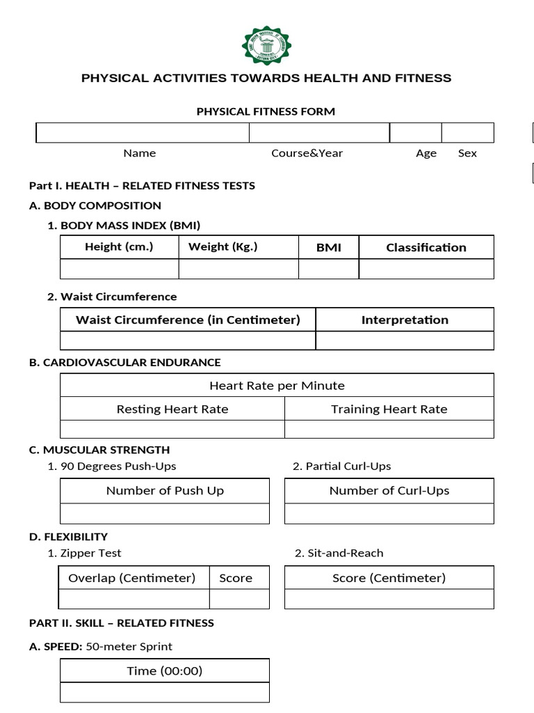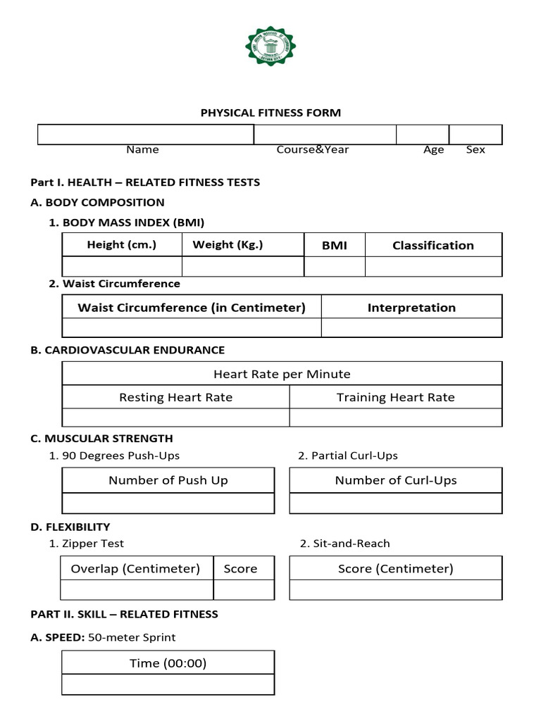 Physical Fitness Assessment Fillable PDF Template - Editable Forms's Ko ...