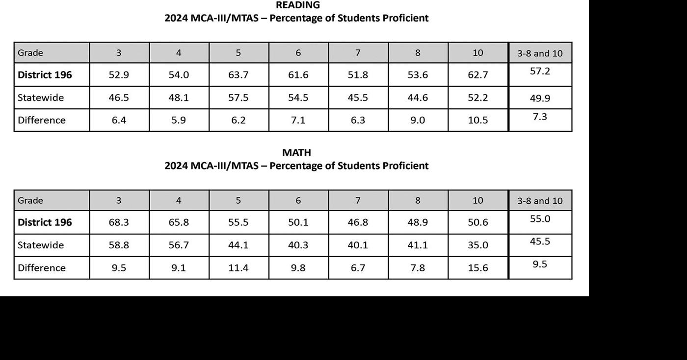 District 196 exceeds state averages on reading, math, and science tests ...