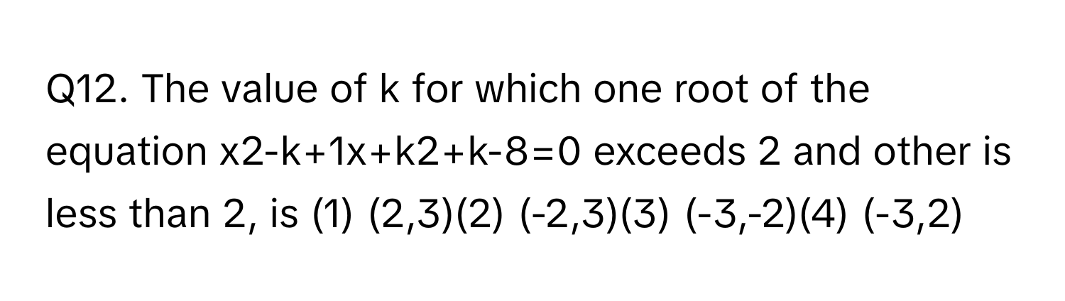 Solved: The value of k for which one root of the equation x2-k+1x+k2+k ...