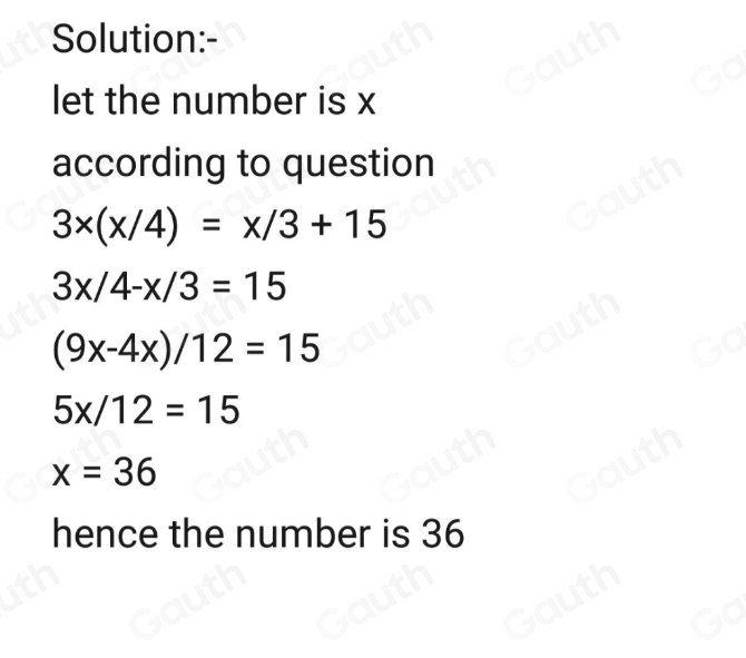 Solved: Three-fourths of a number exceeds its one-third by 15. Find the ...