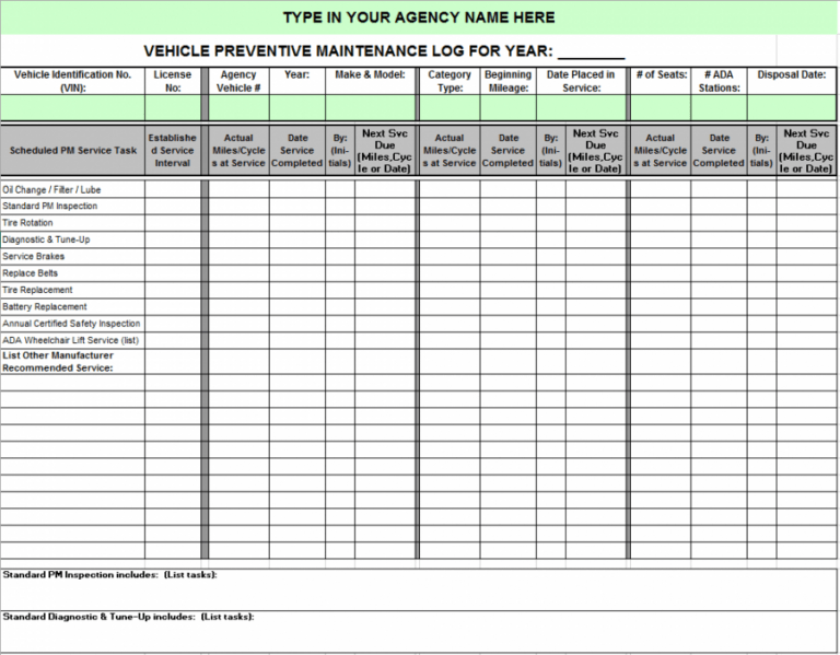 Printable Maintenance Log Ms Excel Archives Templatehub Fleet ...