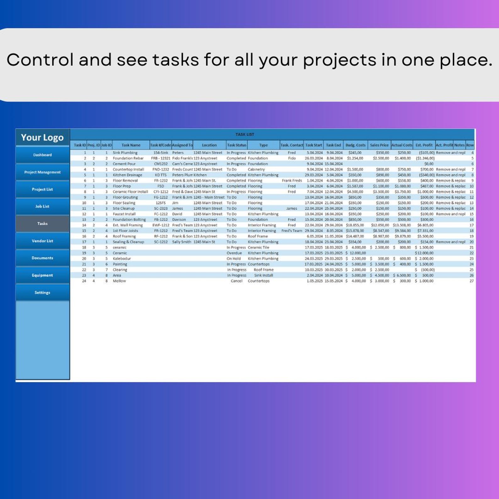 Construction Project Management Excel Template: Budget & Task Planner ...