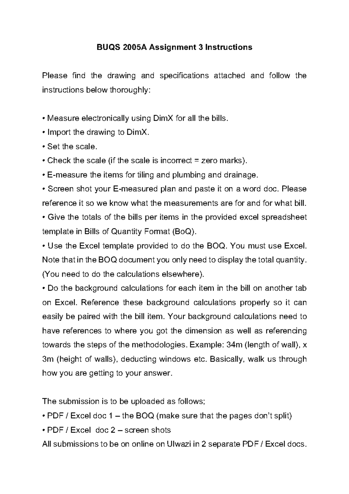 BUQS 2005A Assignment 3: DimX Measurement & BOQ Instructions - Studocu