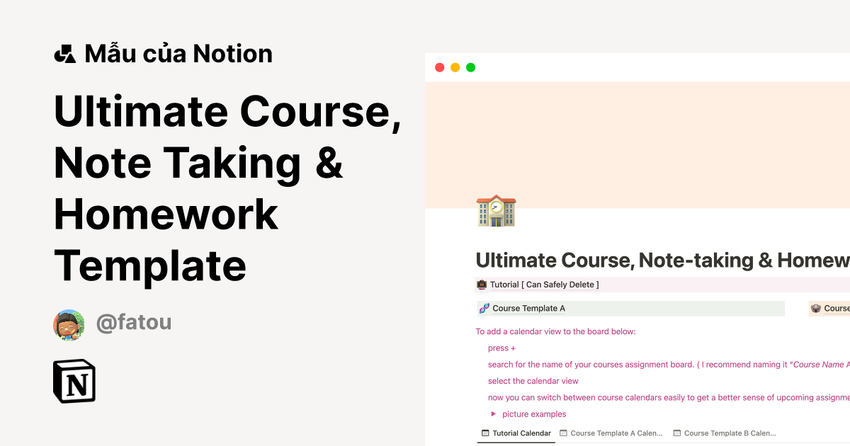 Mẫu Ultimate Course, Note Taking & Homework Template | Thị trường Notion
