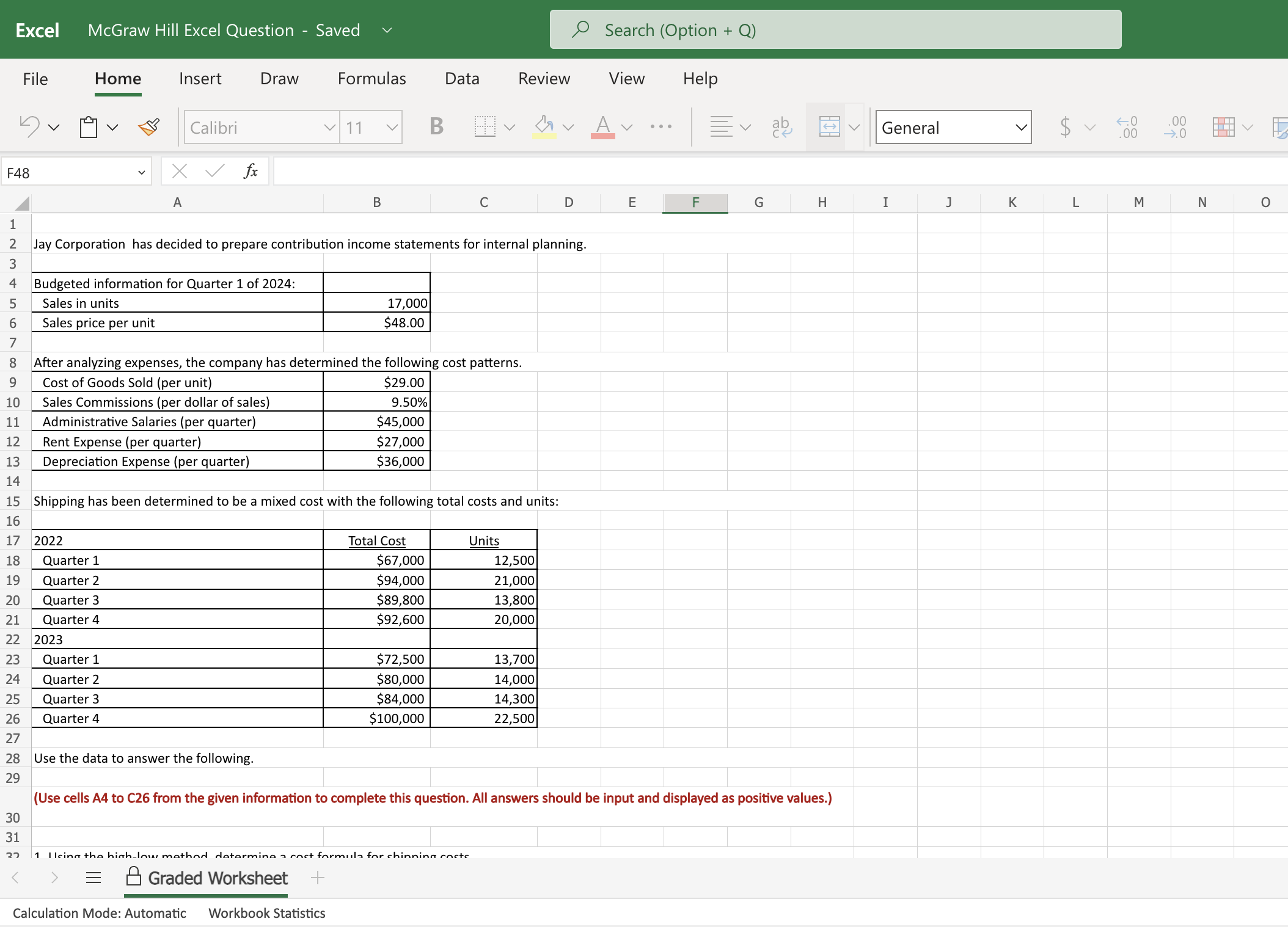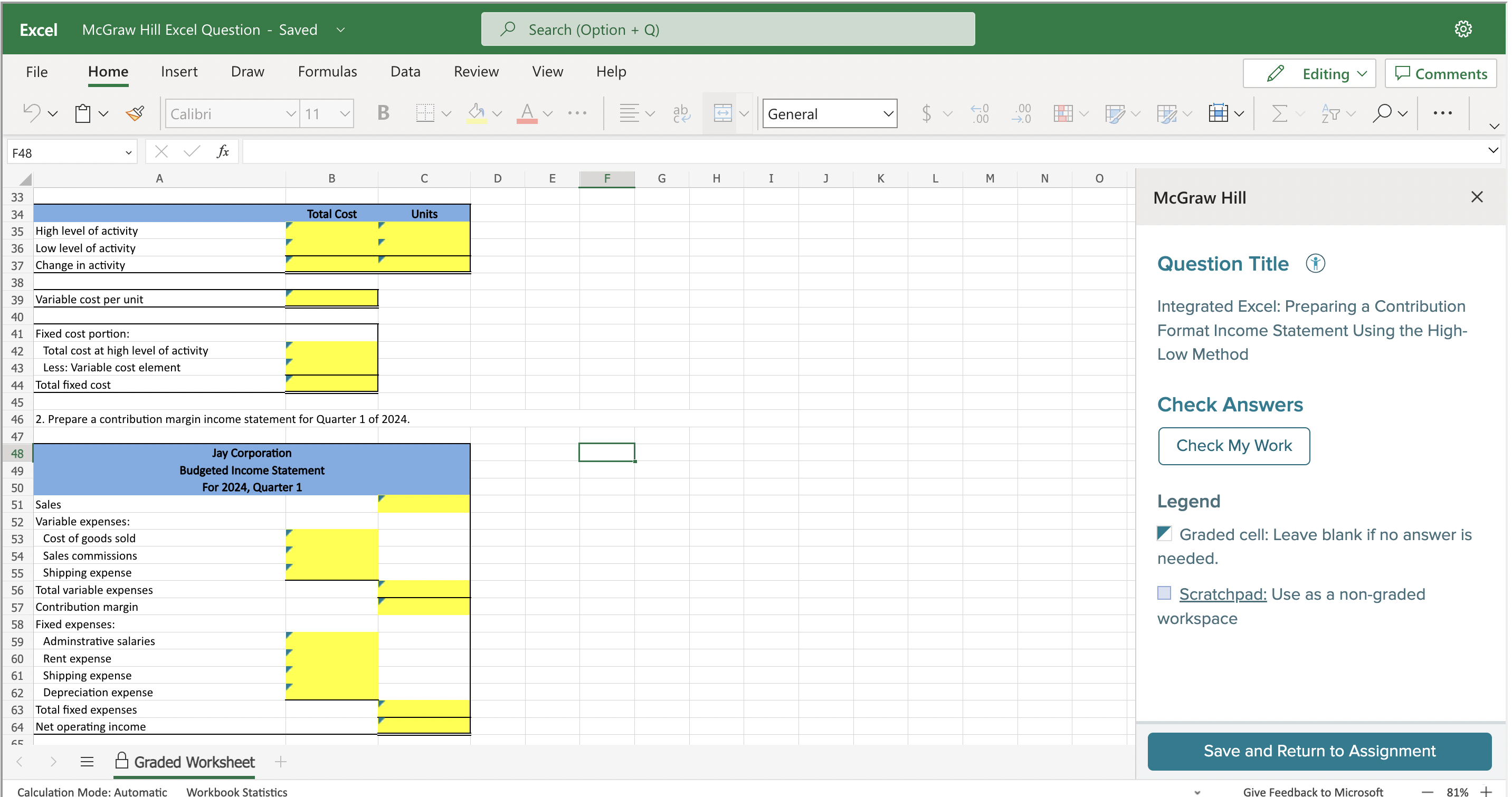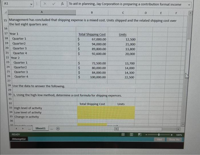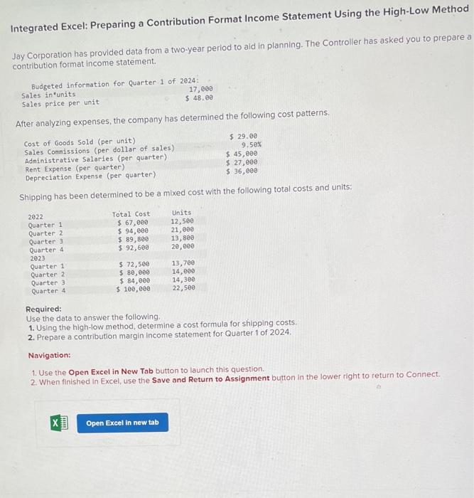 Solved Excel SIM: High-Low Method; Contribution Format | Chegg.com