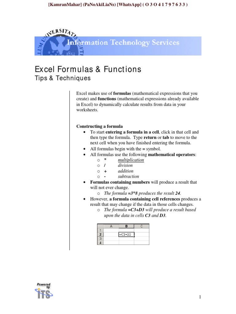 a pdf list of excel formulas - Excel Formulas Basic math Function ...