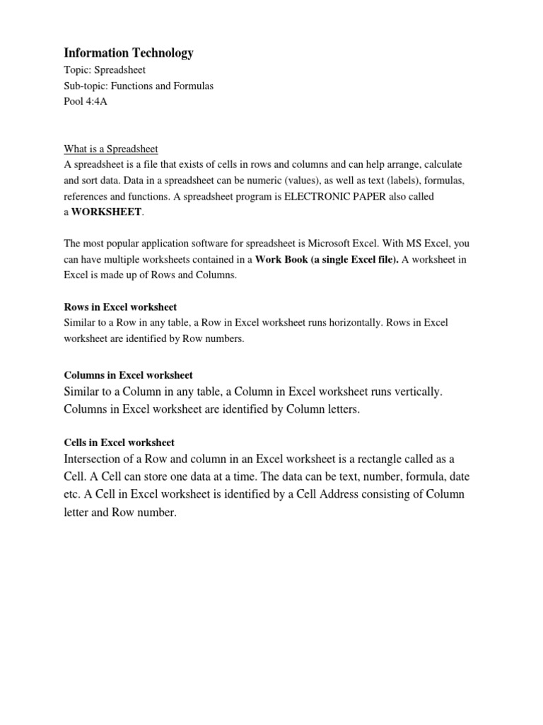 Formula and Functions in MS Excel | PDF | Spreadsheet | Microsoft Excel