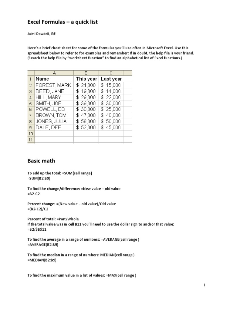 Excel Formula Cheat Sheet Printable - Printable Learning Sheets