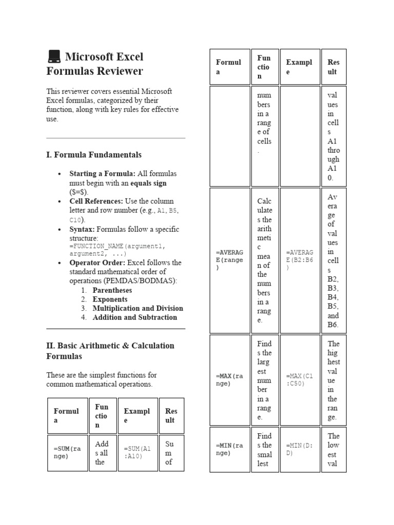 Basic Excel Formulas - List of Important Formulas For Beginners PDF ...