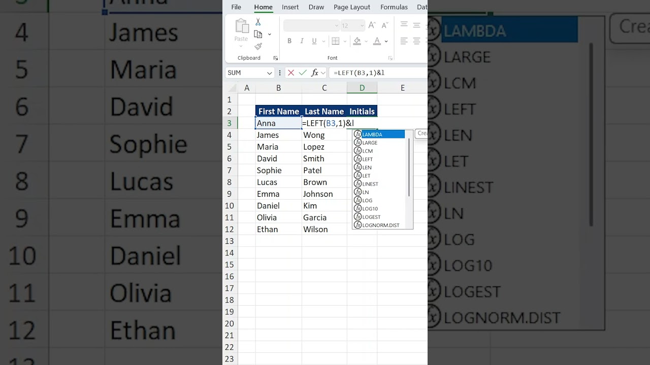 How to extract the initials from a name in Excel