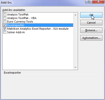 How to manually add Excel Reporter Add-In?