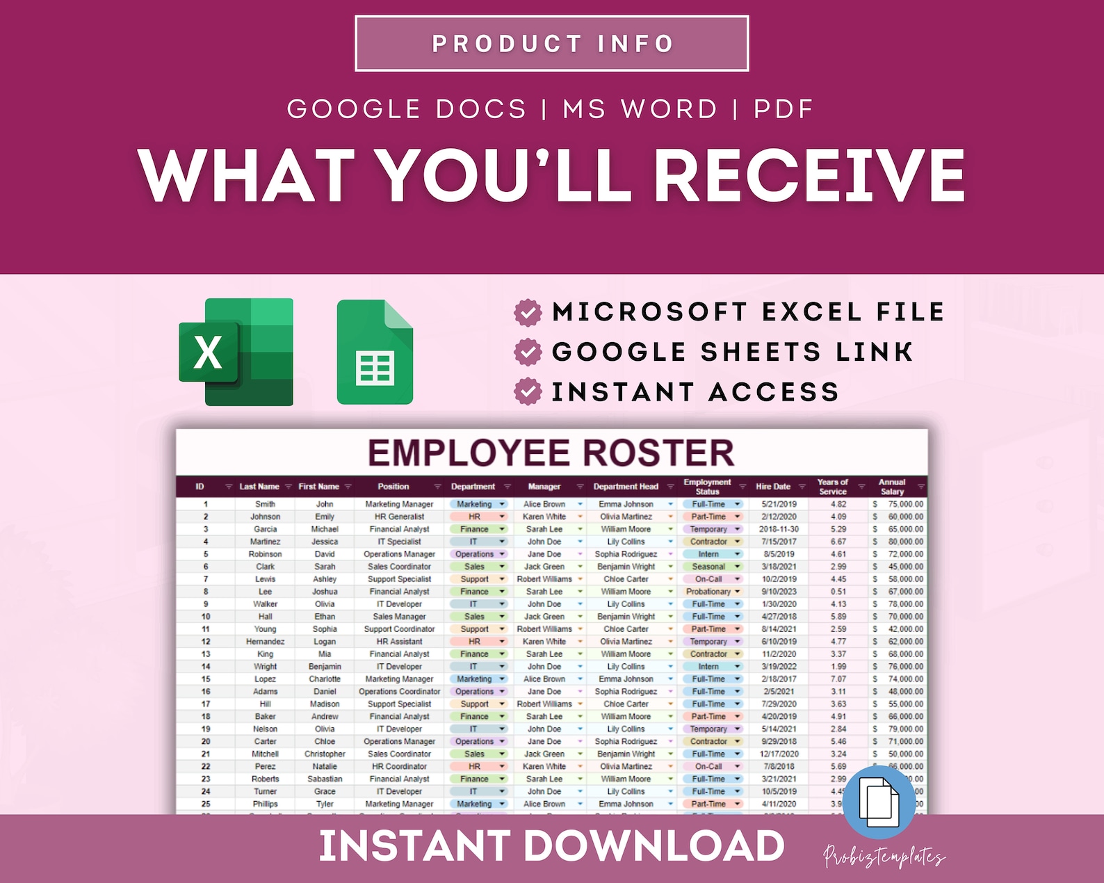 Employee Roster Template, Staff Database Template, Personnel Records ...