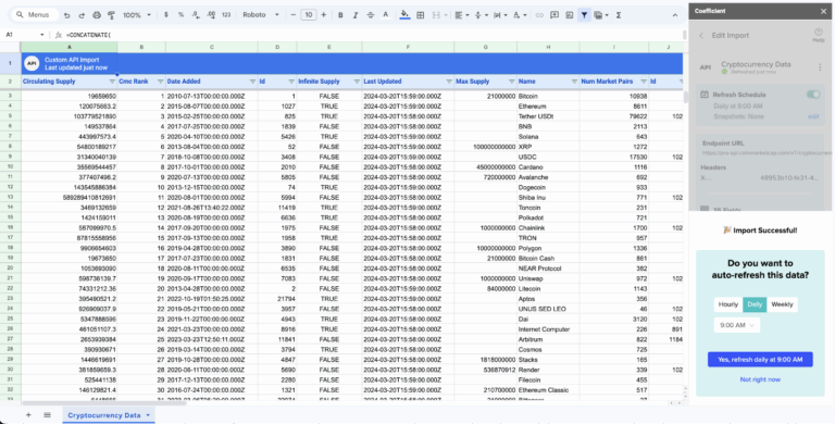 Excel Import CoinMarketCap API Data with Query - Syntax Byte