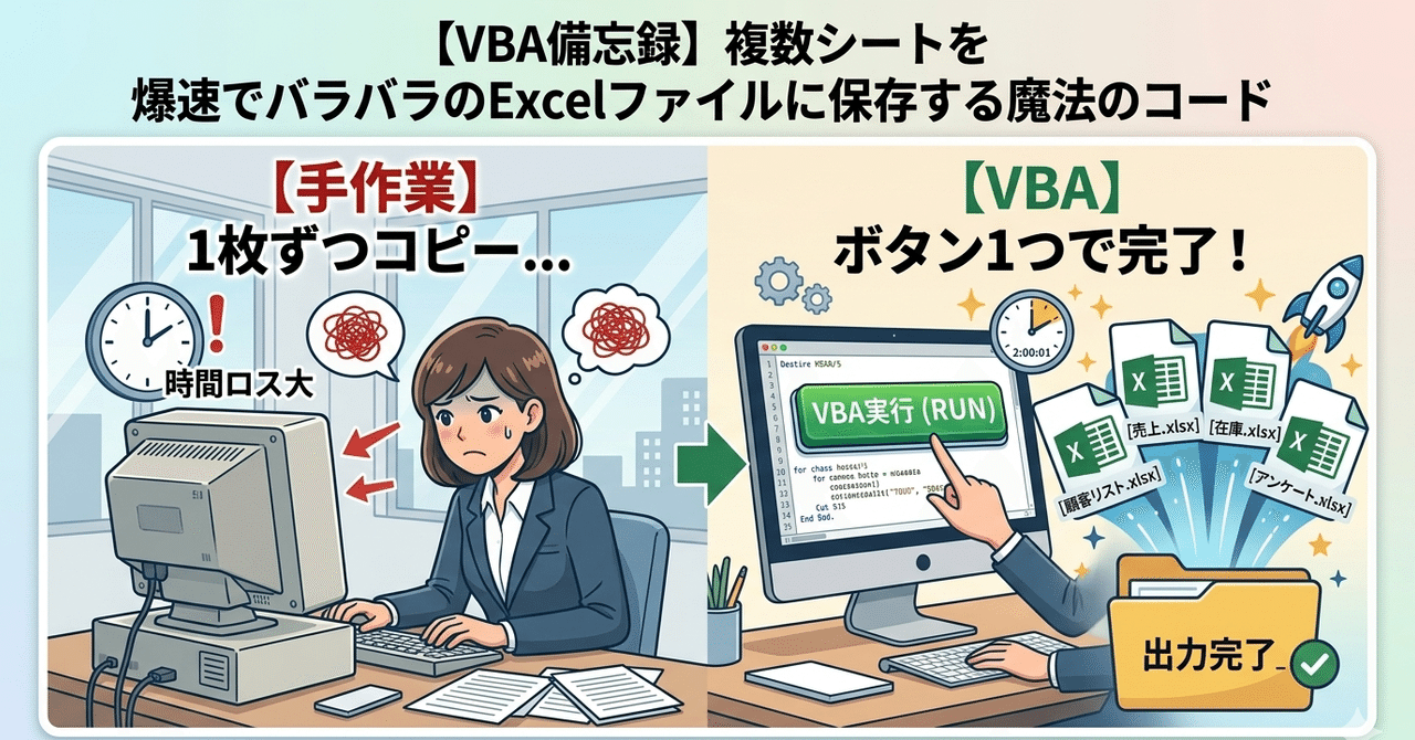 【VBA備忘録】複数シートを爆速でバラバラのExcelファイルに保存する魔法のコード|FŪmito