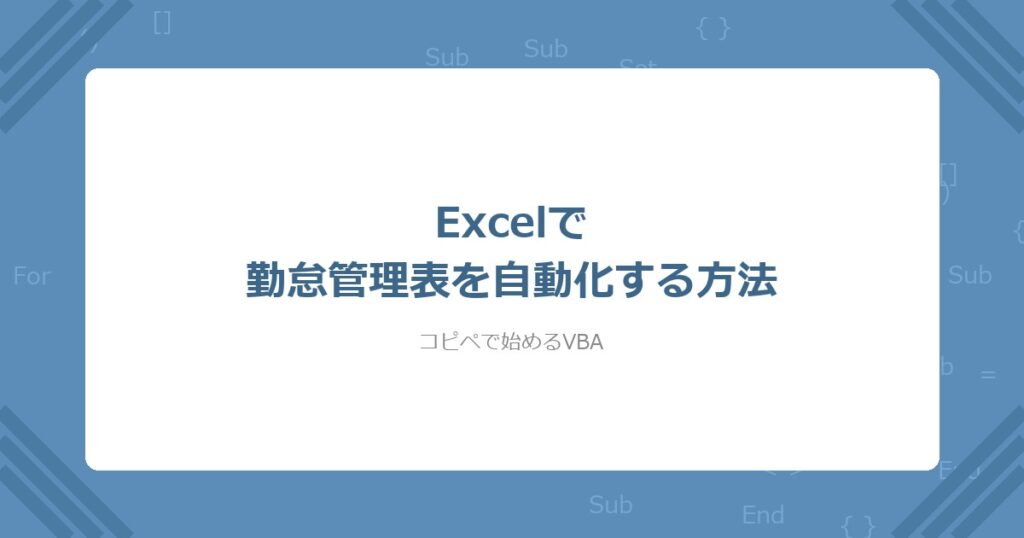 【VBA】Excelで勤怠管理表を自動化する方法(コピペOK) - コピペで始めるVBA