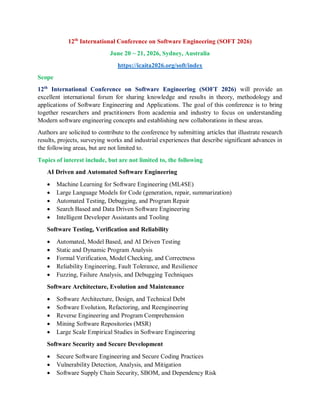 12th International Conference on Software Engineering (SOFT 2026) | PDF