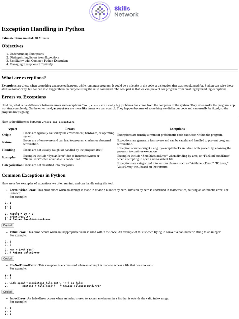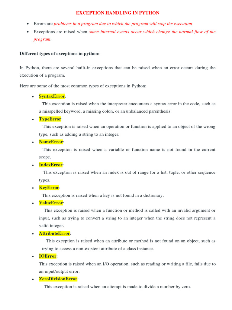 Exception Handling In Python With Example at Donna Willey blog