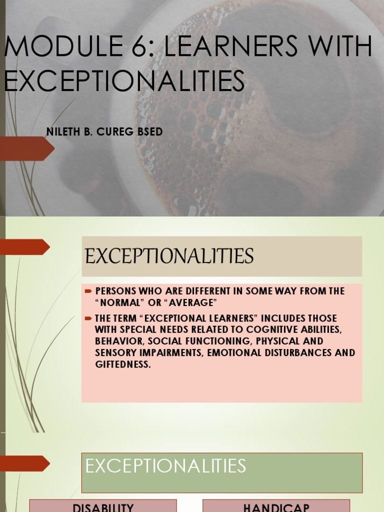 LEARNERS WITH EXCEPTIONALITIES PART1 | PDF | Disability | Learning