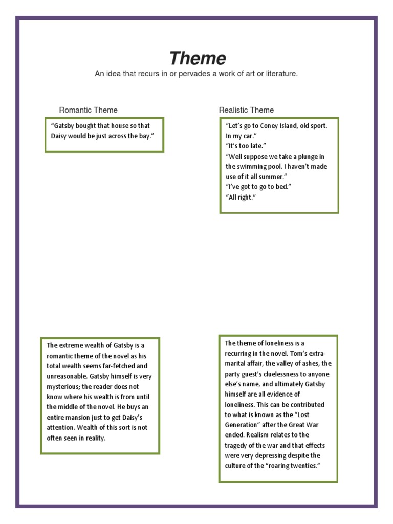 Match the theme with the excerpt by Middle School- High Rigor | TPT