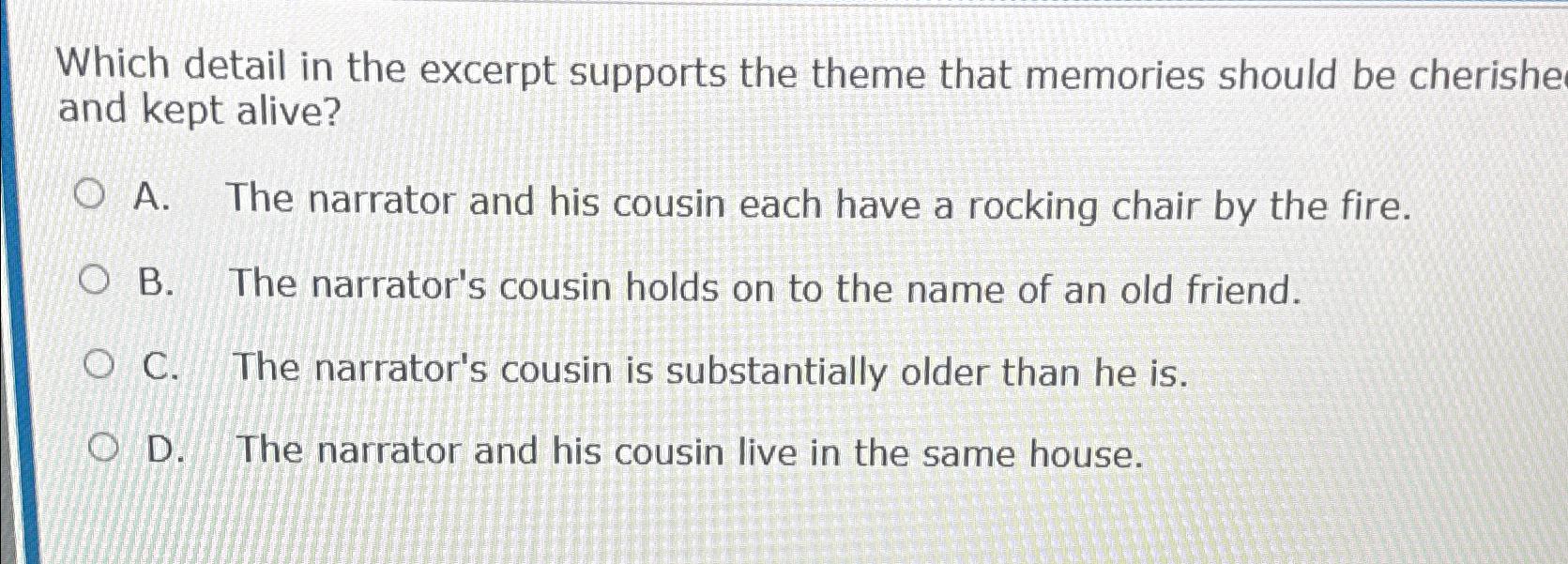 Solved Which detail in the excerpt supports the theme that | Chegg.com