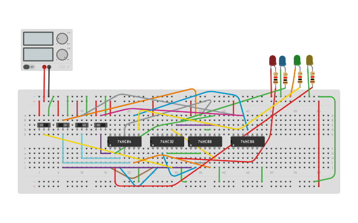 Circuit design LAB 6- BCD to Excess-3 code converter circuit - Tinkercad