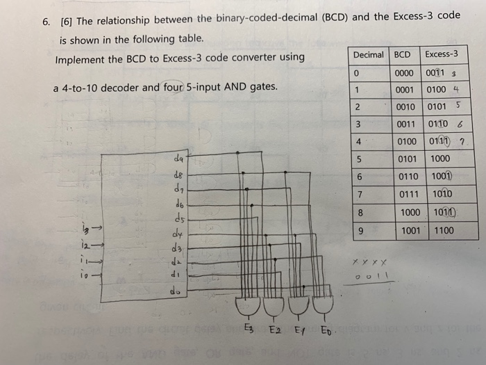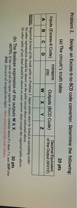 Solved Problem 2. Design an Excess-6-to-BCD code converter. | Chegg.com
