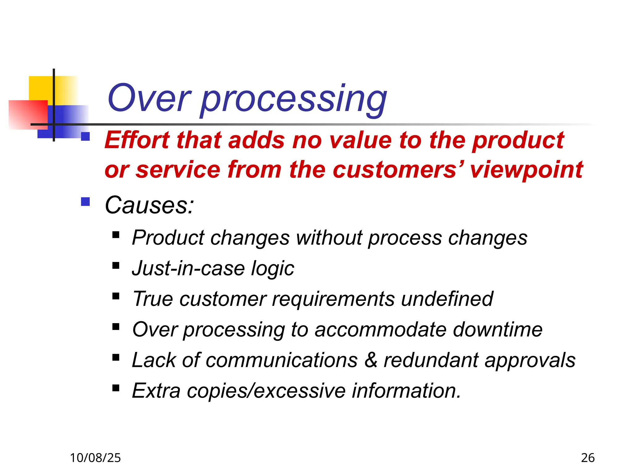 Waste of Overprocessing; causes, costs, examples solutions, symptoms