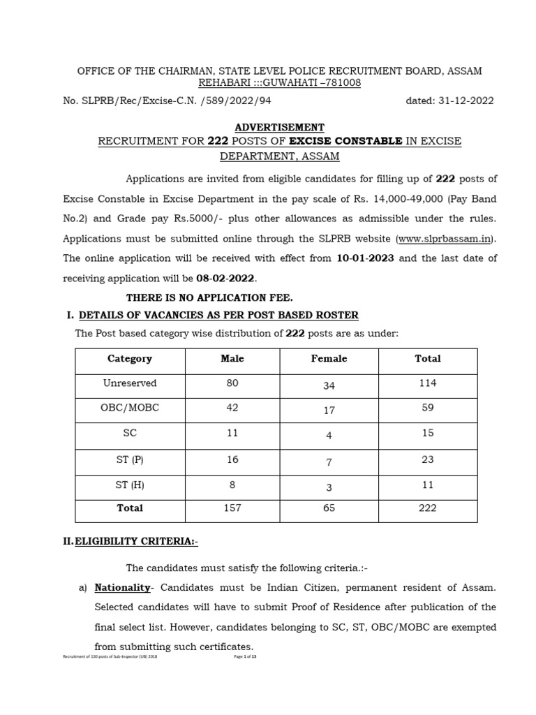 Assam Excise Constable Recruitment 2023 | असम पुलिस आबकारी कांस्टेबल के ...