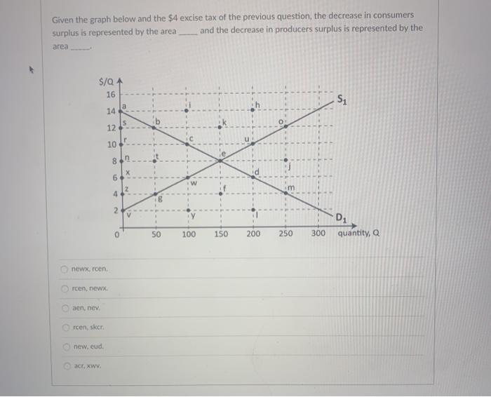 Solved Given the graph below and the $4 excise tax of the | Chegg.com