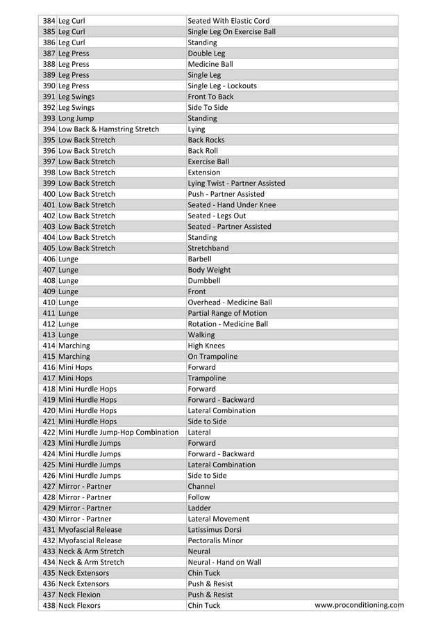 List of all exercise names | PDF | Fitness and Exercise | Healthy Living