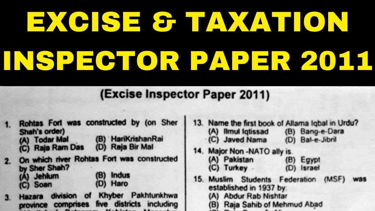 Excise Inspector | Excise and Taxation Inspector Past Papers | Past ...