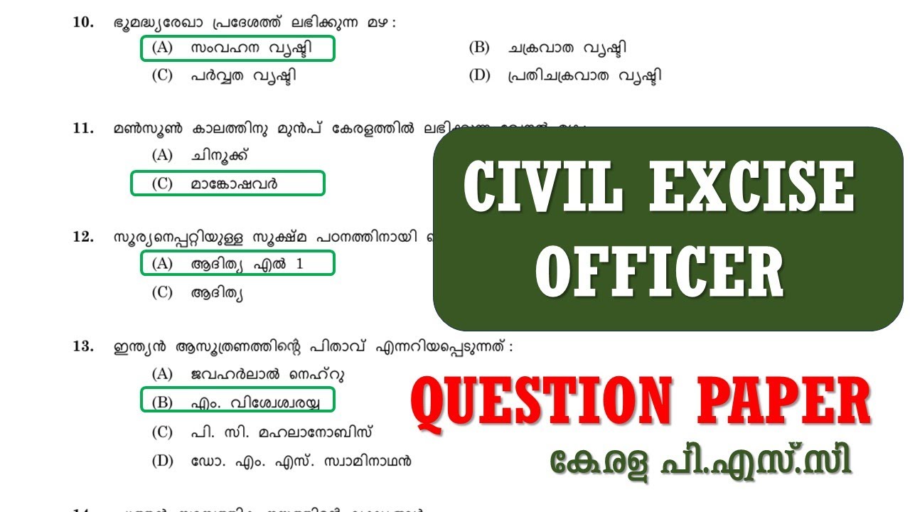 Women Civil Excise Officer-Excise Question Paper and Answer Key - Rank ...