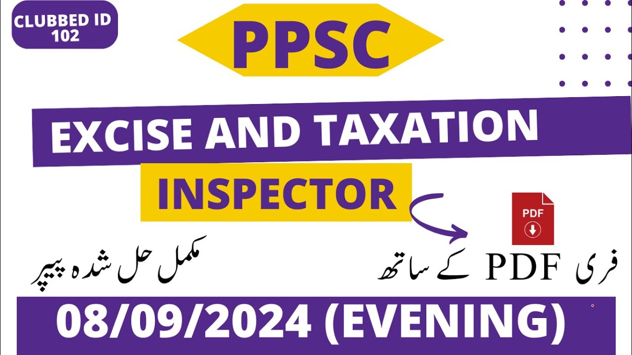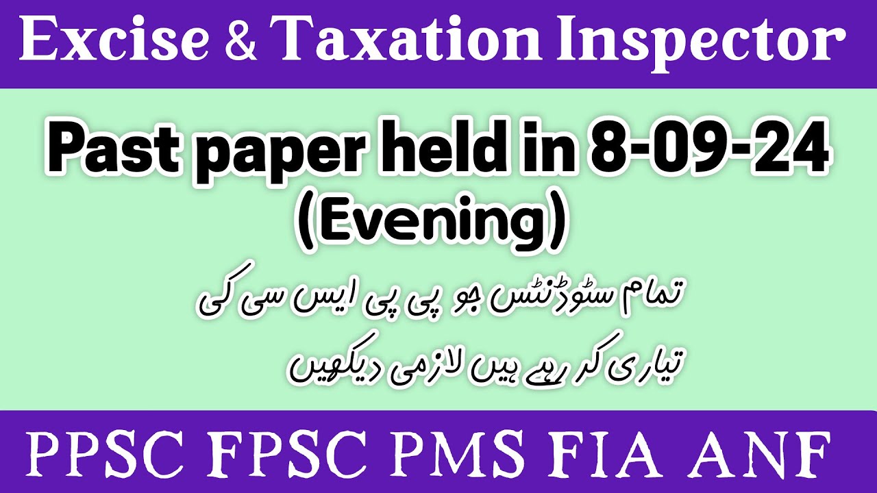 Excise and Taxation Inspector past papers (Solved) Lesson # 10 - YouTube