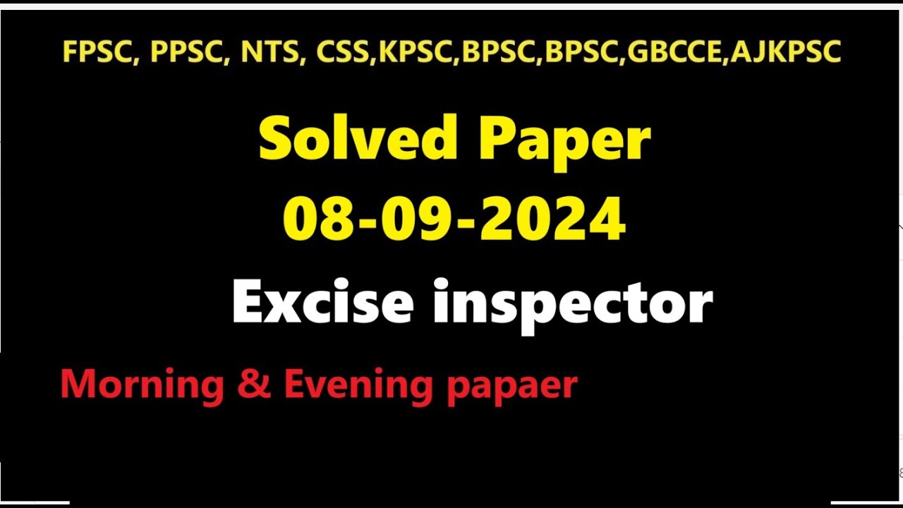 Excise inspector solved paper evening 08/09/2024| part 1| PPSC past ...