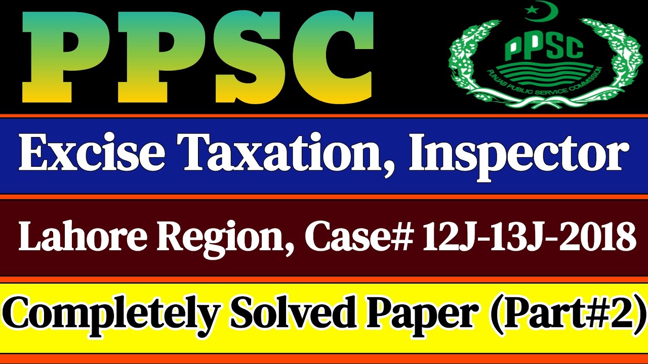 PPSC Excise Taxation Lahore Region Paper | Excise Taxation 2018 Solved ...