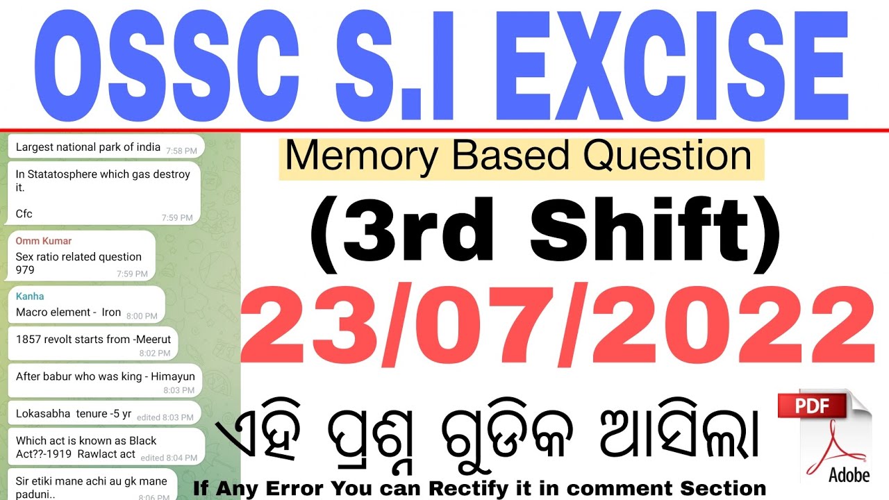 Odisha Excise SI previous year question Discussion||OSSC Excise SI ...