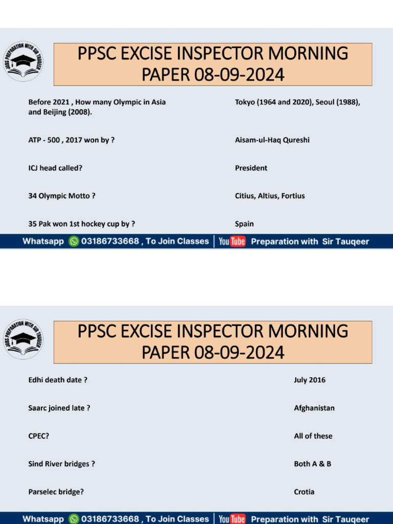 Today PPSC Solved Paper 08-09-2024 | Solved PPSC Paper Excise inspector ...