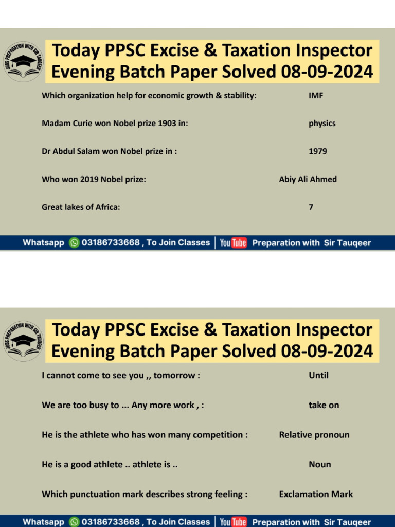 Excise and taxation inspector past papers | excise and taxation ...