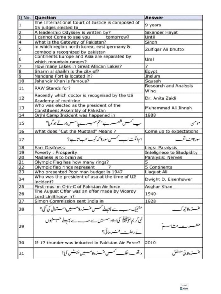 Past Papers MCQ | Excise And Taxation Inspector Past Papers I Excise ...