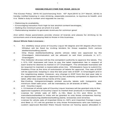 MICROBREWERY IN INDIA: EXCISE POLICY CHANDIGARH | PDF
