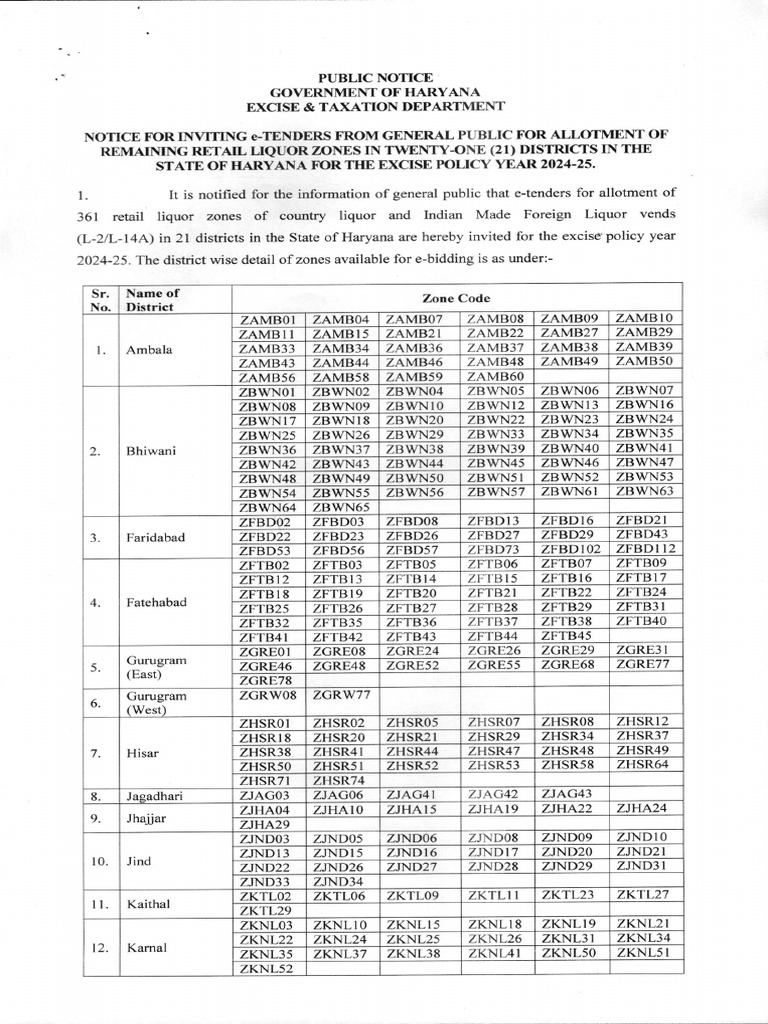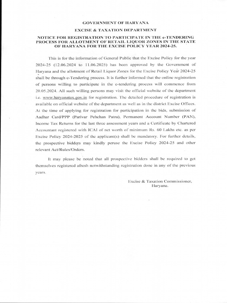 Haryana Excise Department notifies the Haryana Excise Policy 2024-2025 ...