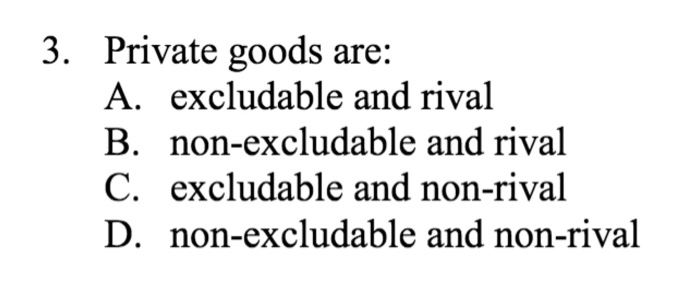 Solved 3. Private goods are: A. excludable and rival B. | Chegg.com
